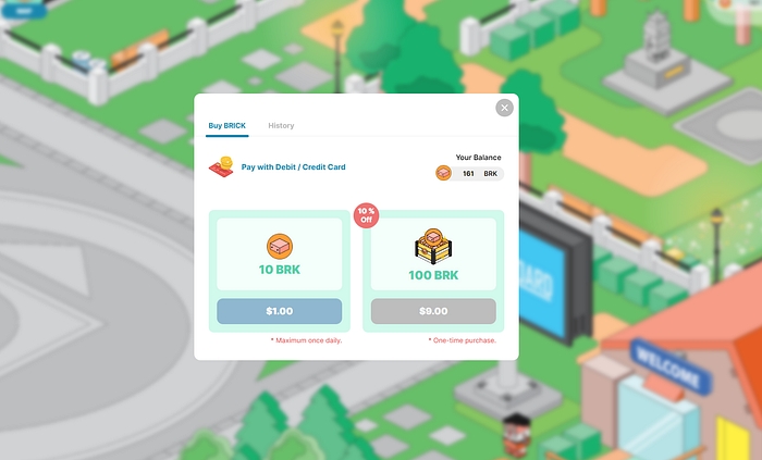 During the prototype testing phase, active participation is encouraged from all users within the metaverse. As users engage in various activities and utilize the available features, such as Shop to Earn and Game Center, they have the opportunity to accumulate Brick, the exclusive in-game currency.